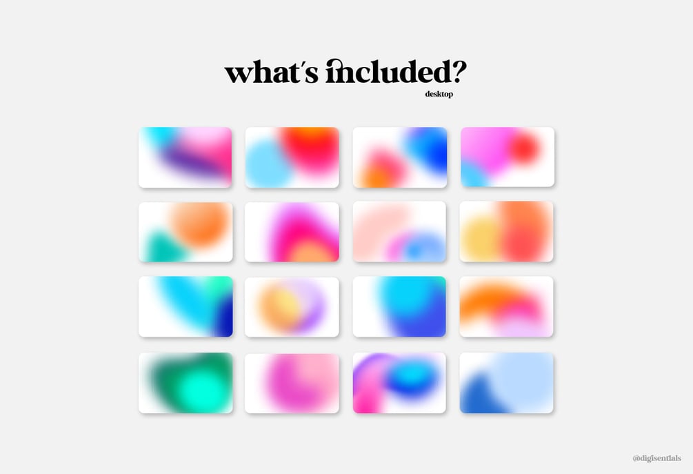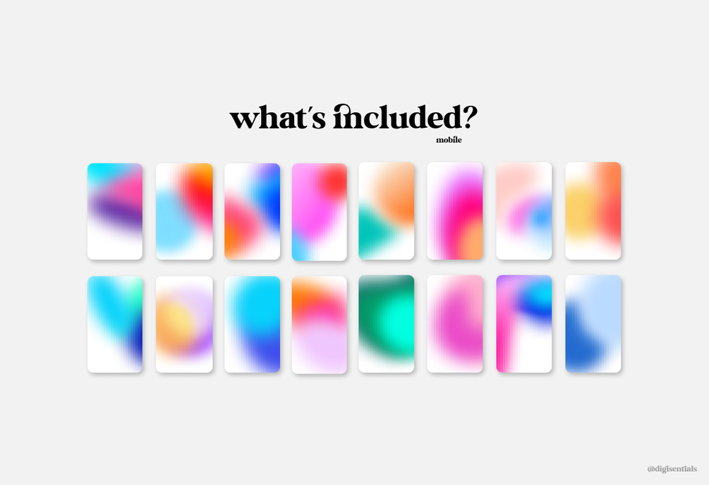 The Soft Gradients wallpaper pack. Featuring 16 different mobile and desktop wallpapers. Each wallpaper has a unique style and color combination. They look great on both mobile and desktop. Wallpaper have a glassy effect. Pack includes both smooth and grainy variations.