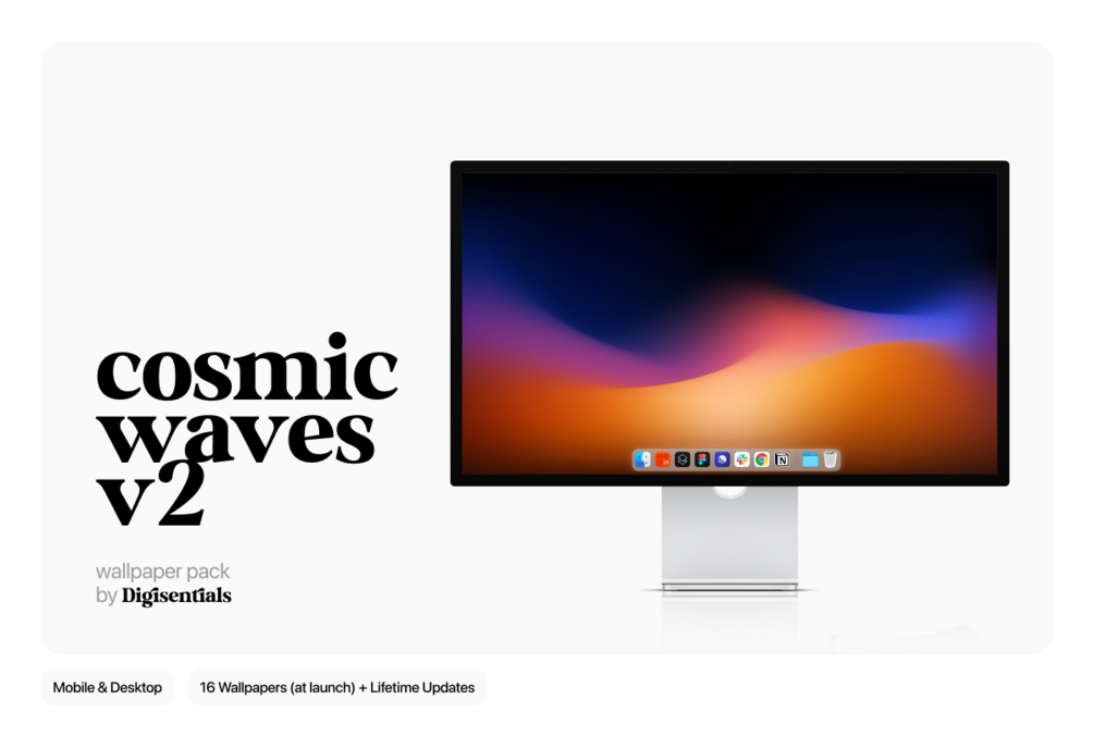 After being one of the best selling packs, here is the latest Cosmic Waves wallpaper pack, v2. Featuring 16 different mobile and desktop wallpapers. These gradients meld together to create an interstellar spectacle right on your screen. Each wallpaper has a unique style and color combination. They look great on both mobile and desktop. Pack includes both smooth and grainy variations.