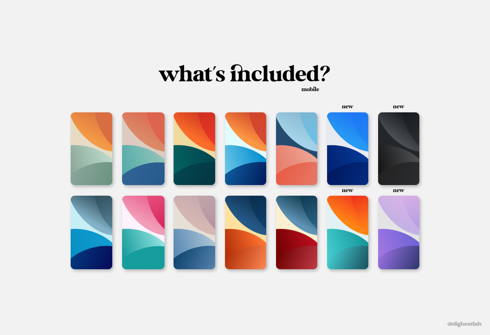The Horizons wallpaper pack. Featuring 10 different mobile and desktop wallpapers. Each wallpaper has a unique style and color combination. They look great on both mobile and desktop. Pack includes both smooth and grainy variations.