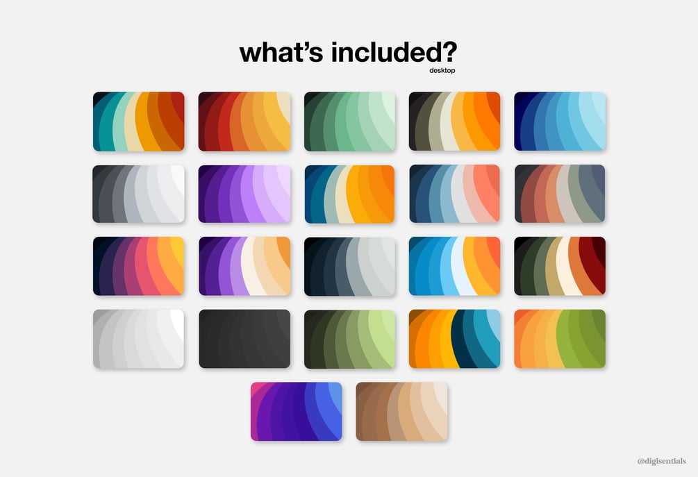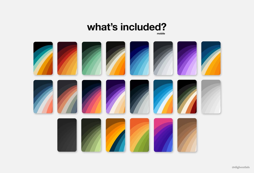 22 smooth, color-rich wallpapers. Clean color palette curves for desktop and mobile.